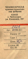 Примером достаточно грамотного подхода к разработке товарного ярлыка отечественными производителями может служить сопроводительная документация к продукции АО "Большевичка" (Москва), выпускающего мужские костюмы. Специальный картон, не позволяющий помяться товарному ярлыку, удачно подобранное цветовое решение, четко читаемый текст, выделенное название предприятия - все это создает благоприятное впечатление и об изделии, им представляемом. Такой ярлык поможет обратить внимание на продукцию фирмы при следующих покупках.
