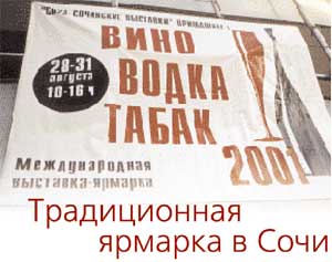 Выставка "Вино. Водка. Табак" проводилась в августе этого года в г. Сочи уже в восьмой раз. В работе этой выставки на протяжении ряда последних лет участвуют представители нашего журнала. Мы с удовольствием наблюдаем за развитием этого интереснейшего смотра.