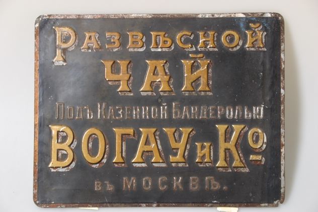 В России вывеска не имела длительной биографии: первые образцы в музейных собраниях датируются концом XIX века. Вывески-эмблемы, вывески-знаки – золоченые кренделя и виноградные грозди, перчатки, сапоги, часы и шляпы исполинских, практически абсурдистских размеров – чаще всего размещались на углах домов, определяя городскую навигацию и перспективу. Эта общеевропейская традиция, идущая еще от средневековья, существовала в России еще в начале ХХ столетия.
