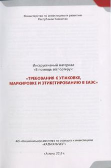 «Требования к упаковке, маркировке и этикетированию в ЕАЭС» - разработан по заказу Министерства инвестиций и развития Республики Казахстан, - экспертами журнала «Тара и упаковка» (авторы: Смиренный И. Н., Кухарский В. В. и Шандыбин С. А).