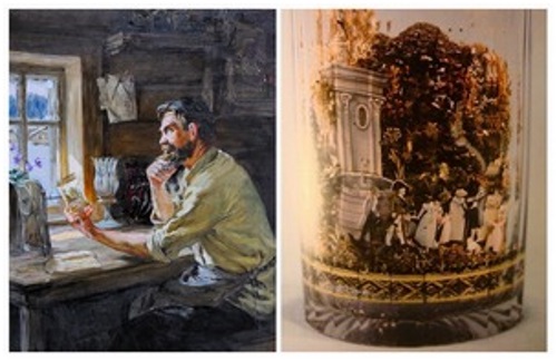 Более 200 лет назад стекольных дел мастер крепостной Александр Вершинин создавал уникальные двухслойные стаканы, между стенками которых располагались целые картины, точнее, маленькие макеты пейзажей, сделанные из камешков, мха, соломы, цветных ниточек и бумаги. Понять секрет их изготовления и воспроизвести подобные изделия до сих пор никому не удалось.