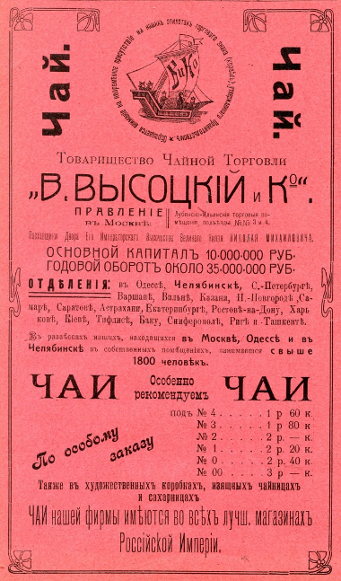 Прекрасно иллюстрированная многочисленными образцами упаковок, этикеток и исторических документов, монография «Чай Высоцкого. Полтора века истории» посвящена истории семьи знаменитого чаеторговца, общественного деятеля и филантропа В. Я. Высоцкого. Основанное им в России Товарищество чайной торговли «В. Высоцкий и Ко» в начале ХХ в., - стало одним из лидеров отрасли. Чай Высоцкого – практически единственный сохранившийся до наших дней чайный бренд российского происхождения, ведущий свою непрерывную историю более полутора веков.