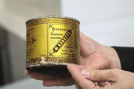 Кажется, что этикетка просто стилизована под старину - сама банка чистая, блестящая, чуть тронутая ржавчиной на ребрах. Удивительно! Сейчас это единственные в мире пригодные для еды консервы старше ста лет. Еще шесть таких же баночек остались в хранилище на Таймыре.